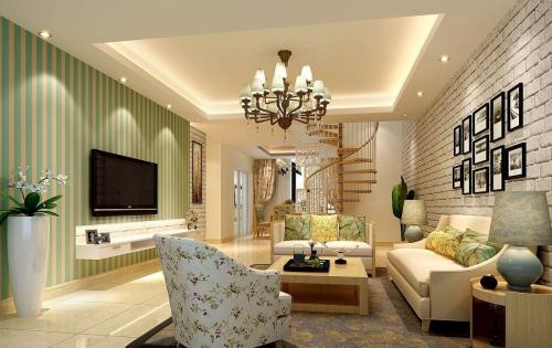 ??浪漫的米色亞麻原料家私唯美清新,淡雅的空間顏色調(diào)配,田園風(fēng)格的客廳給人一種舒適、溫馨的感覺。
